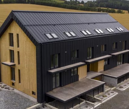 Comax FALC vychází z léta ověřeným lištovým i falcovým krytí z tabulí. Falcované pásy jsou vyráběny z dlouhých a velmi dlouhých šárů a právě díky tomu se hodí na všechny tvary šikmých střech, které jdou ruku v ruce i s moderní architekturou. Velmi těsné spojení jednotlivých pásů dovoluje použití krytiny již od velmi nízkých spádů (4°) až po moderní kolmé oplechování fasády, které plynule přechází ze střechy, nebo jen zvýrazňuje některou část domu.